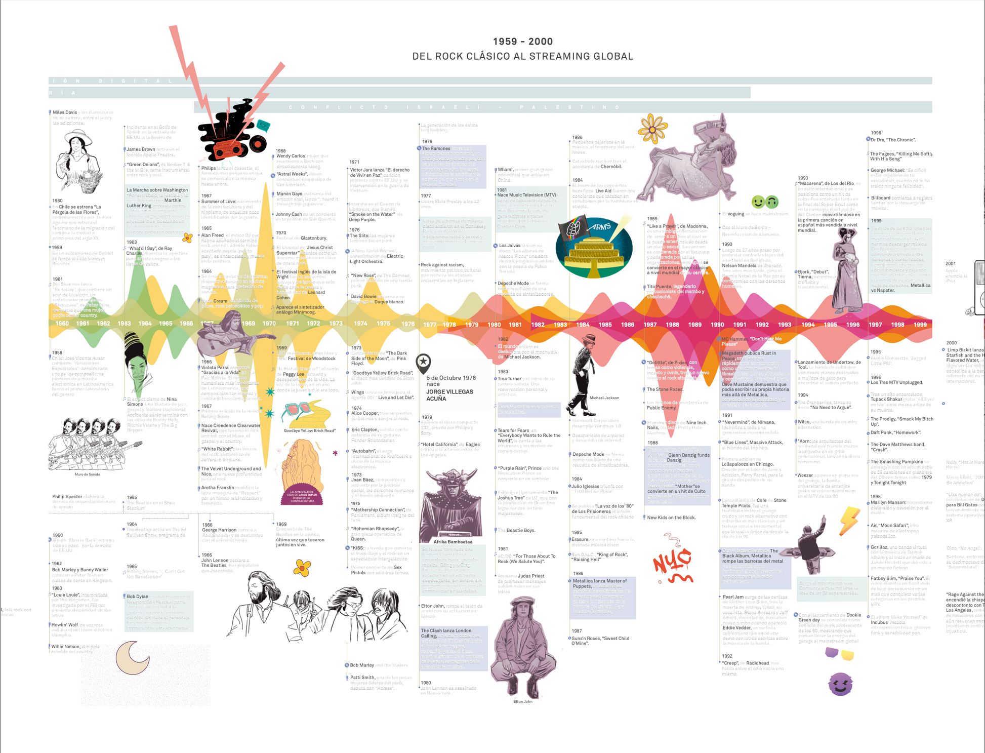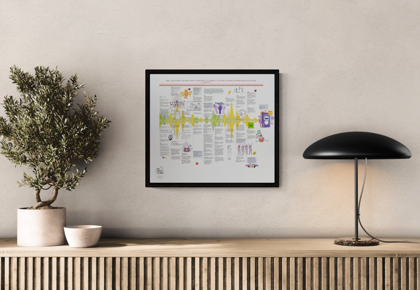 Personalizable: Añade tus propios recuerdos: ese disco que te marcó, una banda que no puede faltar o un momento de tu vida que merezca estar en esta cronología. Una pieza que mezcla historia colectiva y memoria personal, todo en una sola imagen.